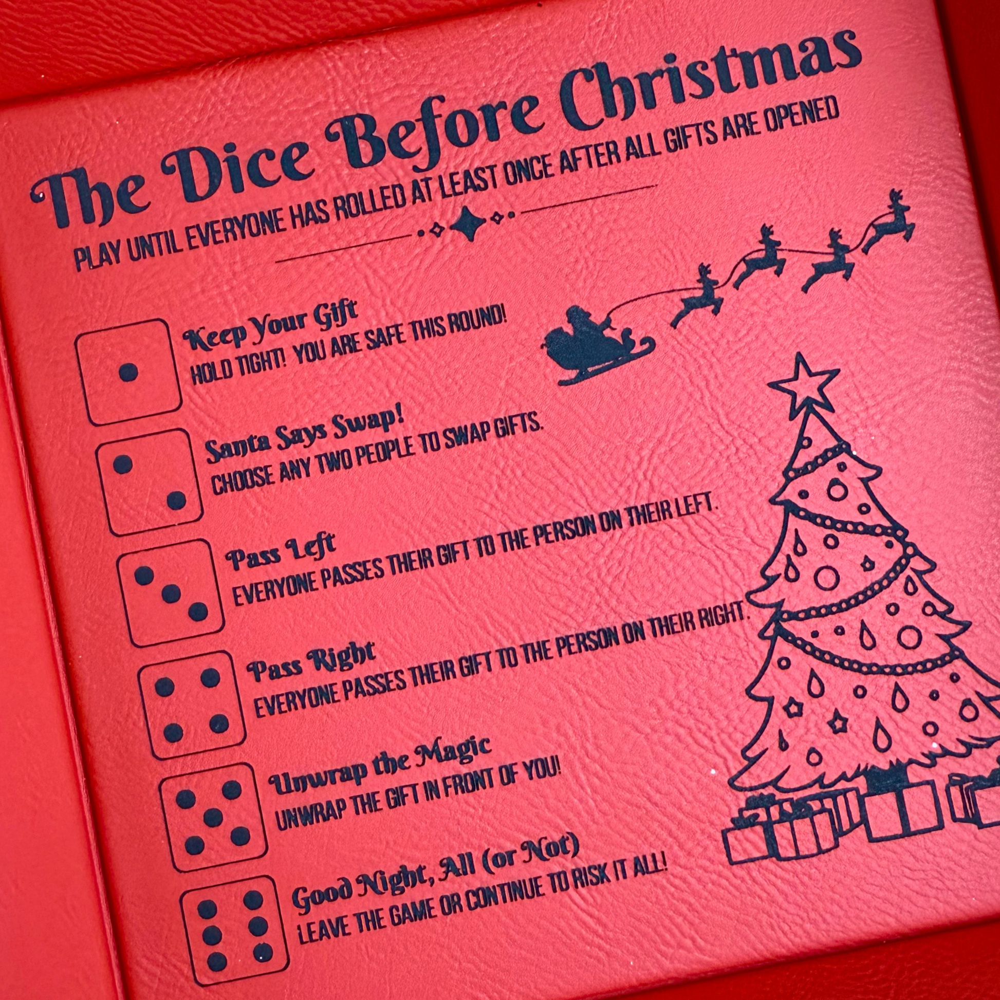 The Dice Before Christmas levels up the traditional Yankee Swap with a fun and festive twist. Each roll of the die decides what happens next — will you keep your gift, swap with a friend, or lose your chance altogether? It’s fast, funny, and full of surprises, making it a new holiday tradition for any gathering.